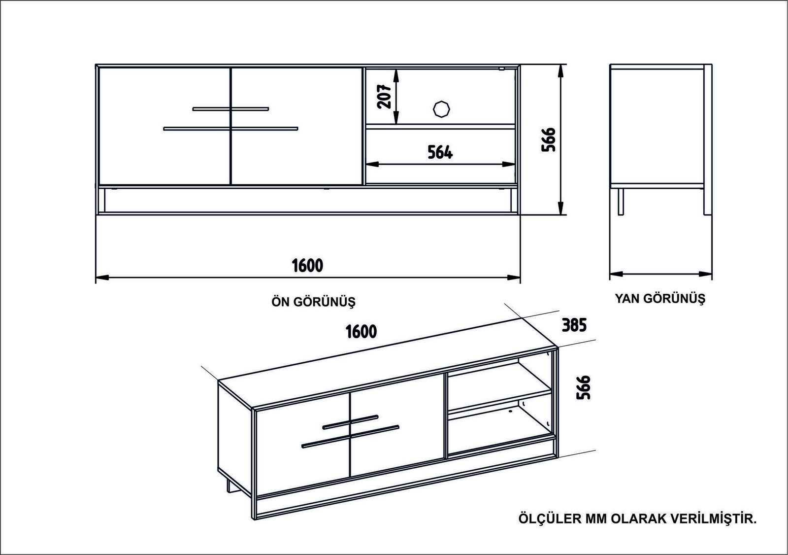 TV stolek rozměry: šířka: 160 cm výška: 56,6 cm hloubka: 38,5 cm