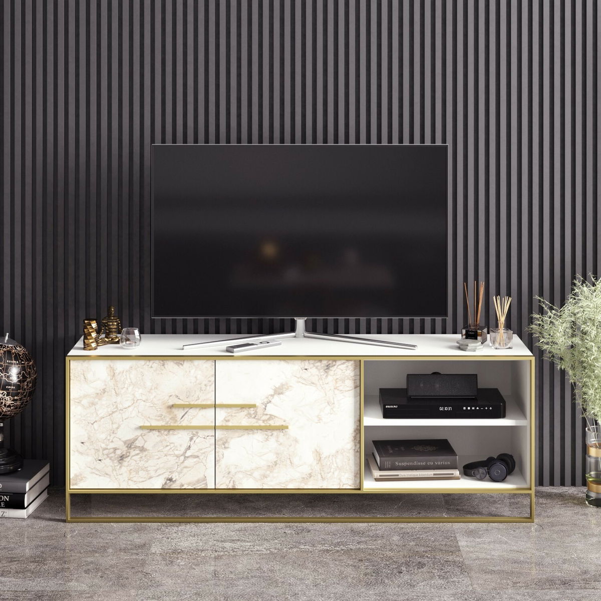 TV stolek/skříňka Poppy (Zlatá + Bílá)