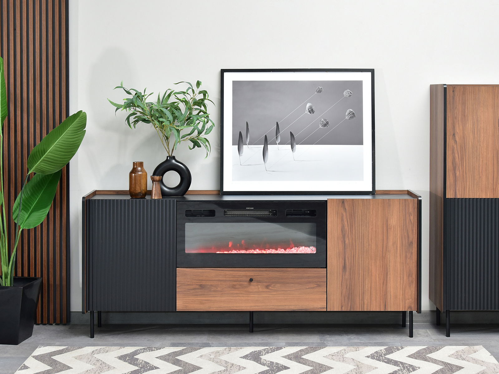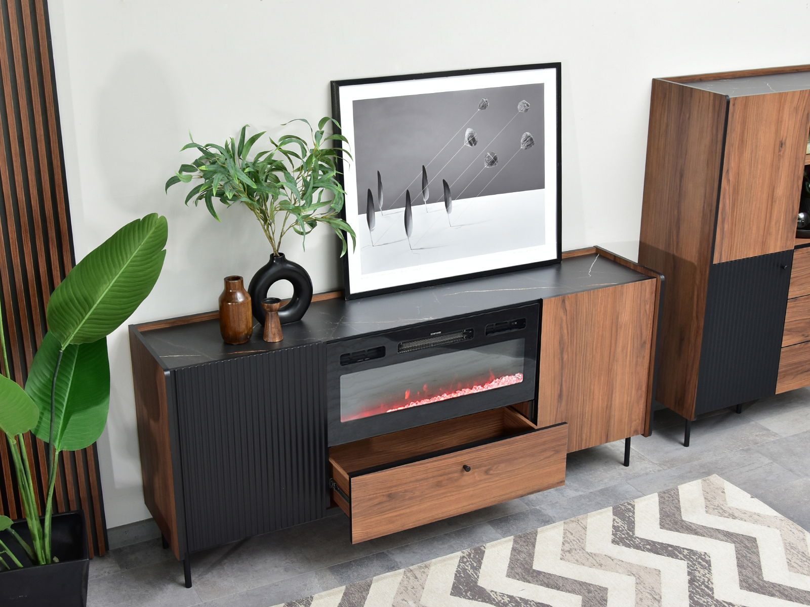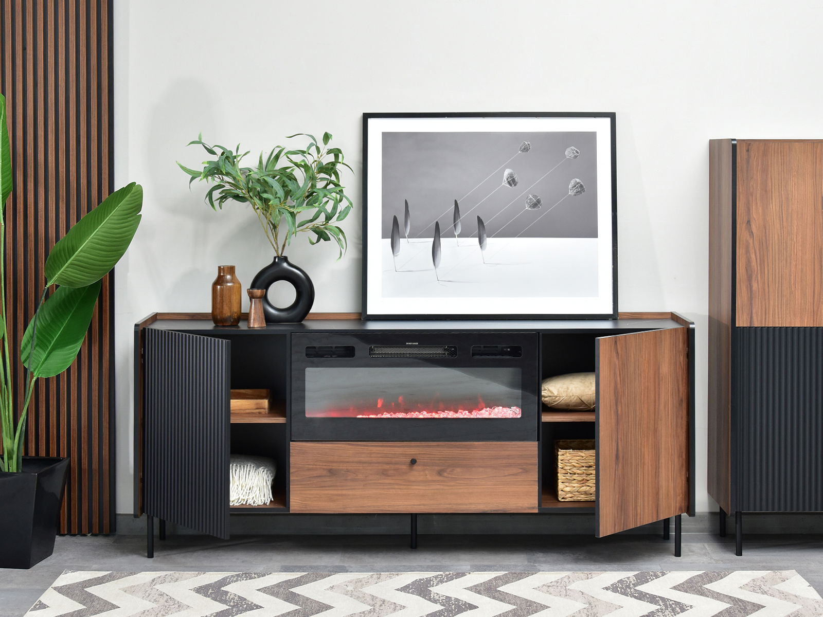 TV stolek/skříňka Protegidas P16 (černá) (s krbem)