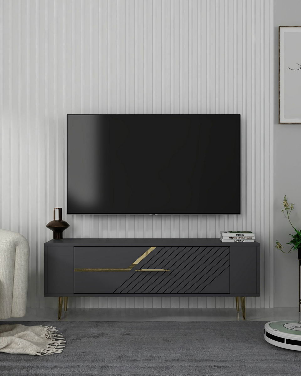 TV stolek/skříňka Retrotopic (antracit + zlatá)