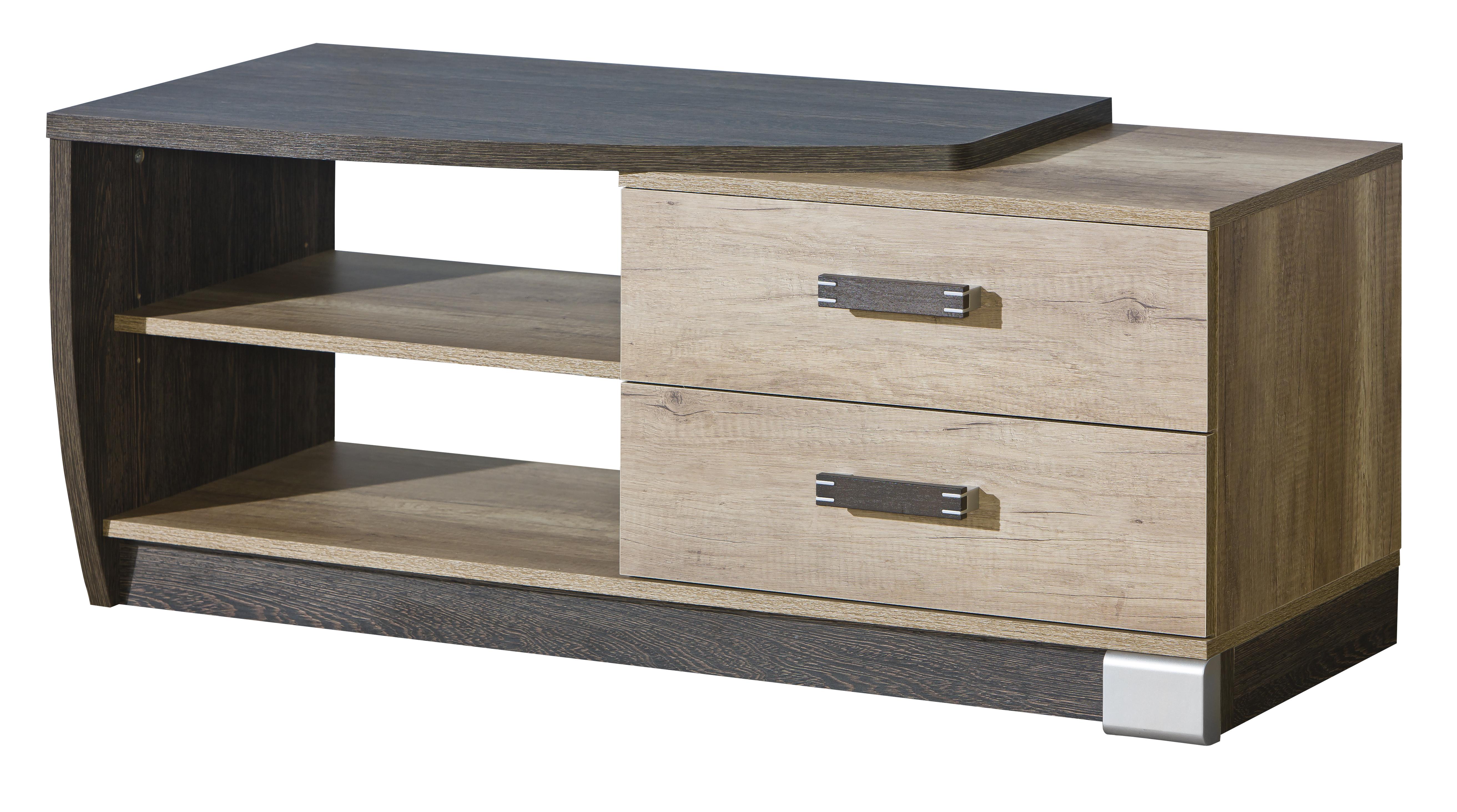Stolek pod TV Roverdon s originálními designem se dá využít i jako "obyčejná" skříňka. Jako úložné prostory jsou k dispozici 2 poličky, které se dají využít například na příslušenství k TV a 2 zásuvky. Vzhledem k netradiční design a konstrukci stolku je dispozic levé i pravé provedení.