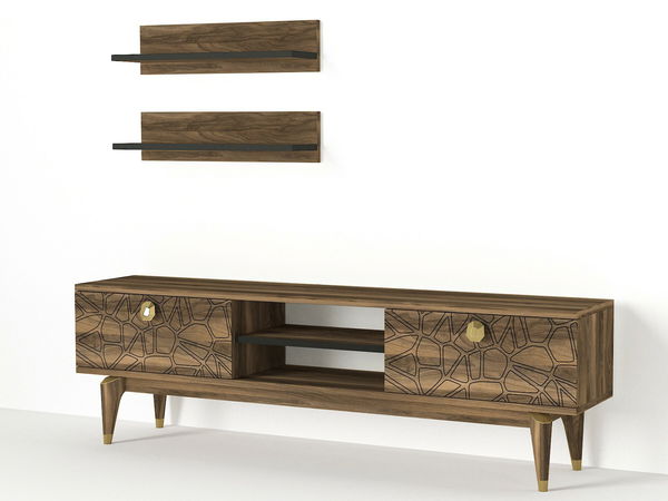 Tento TV stolek/skříňka Roya je ideálním doplňkem pro váš obývací nábytek. S výškou 45,5 cm, šířkou 150 cm a hloubkou 29,5 cm poskytuje dostatek místa pro uspořádání vaší audiovizuální techniky, knih a dekorativních předmětů. Skříňka je vyrobena z kvalitní 100% melaminové desky v přirozené ořechové barvě, která se skvěle hodí k modernímu i tradičnímu nábytku. S jednoduchým a elegantním designem je tato skříňka skvělou volbou pro každého, kdo hledá praktické a stylové řešení pro svůj obývací prostor.