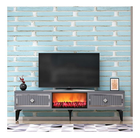 TV stolek/skříňka s krbem Kebive (antracit + stříbrná)