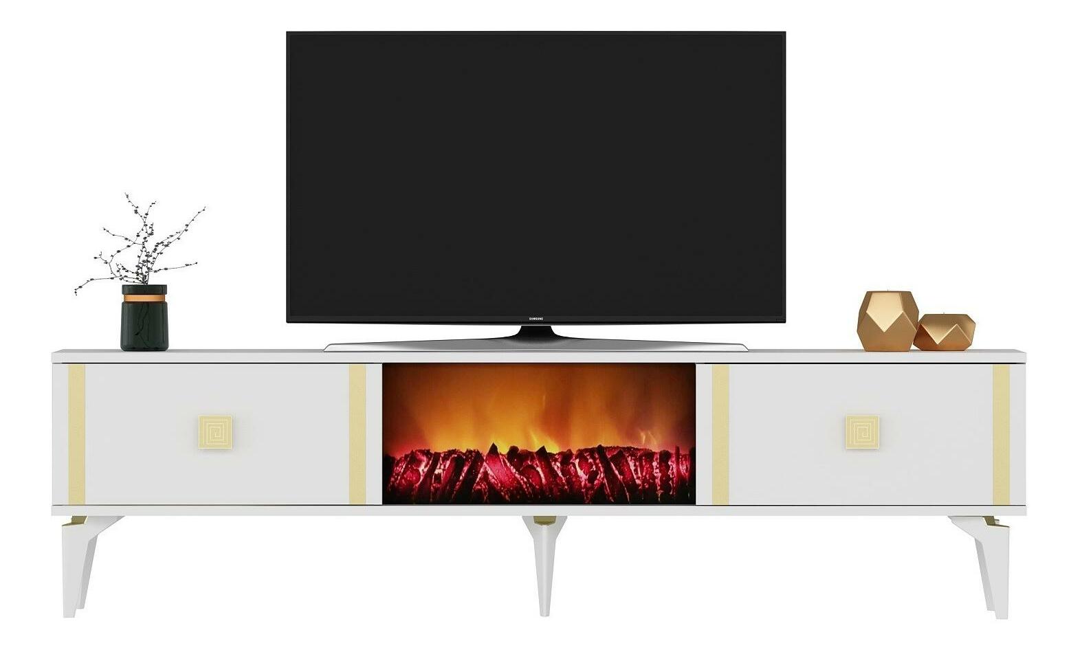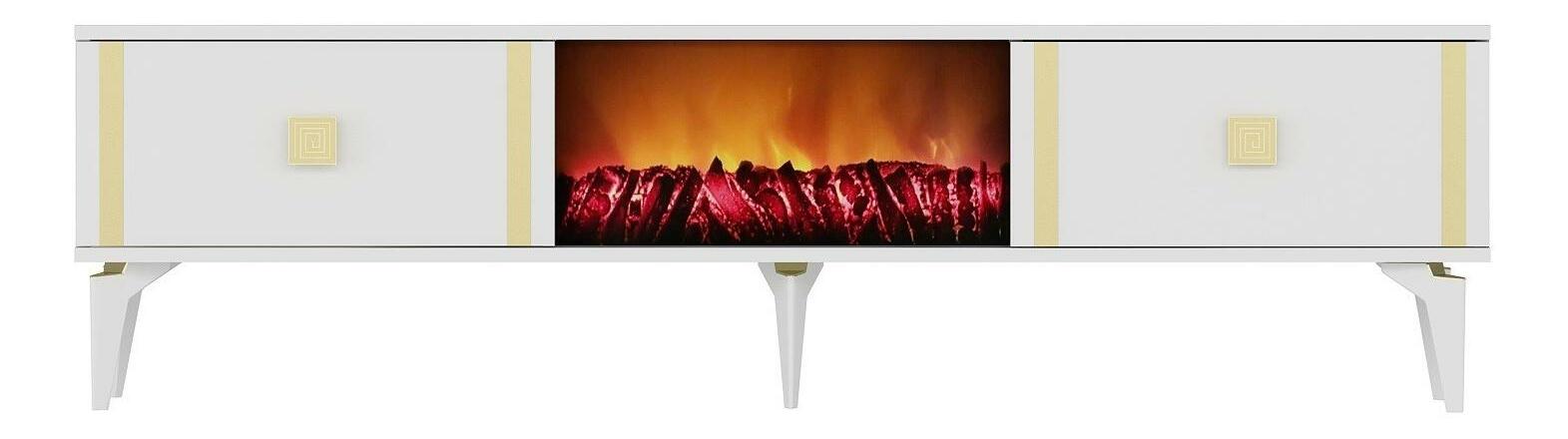 TV stolek/skříňka s krbem Tobuvu 2 (bílá + zlatá)