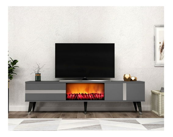 TV stolek/skříňka s krbem Vekika 3 (antracit + stříbrná)