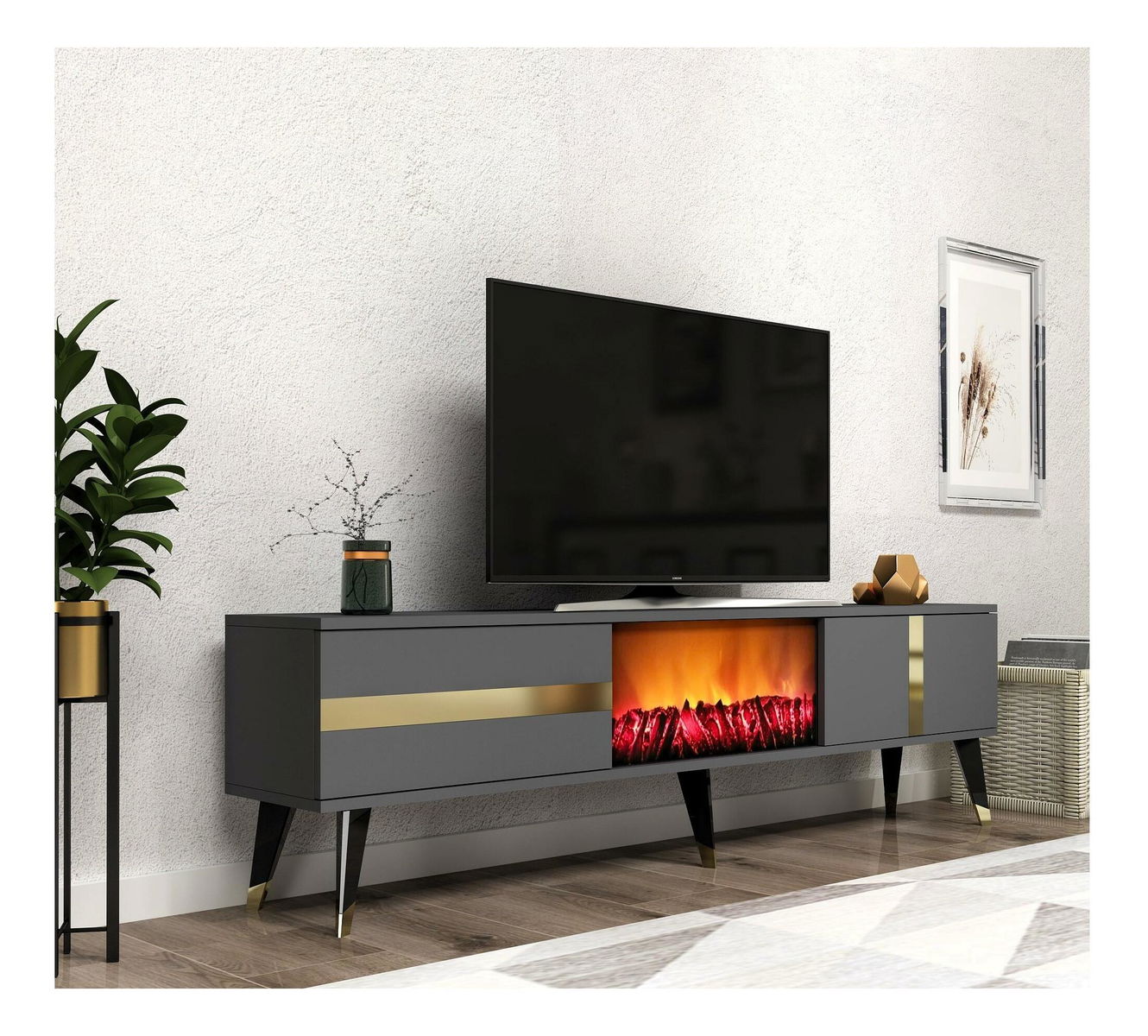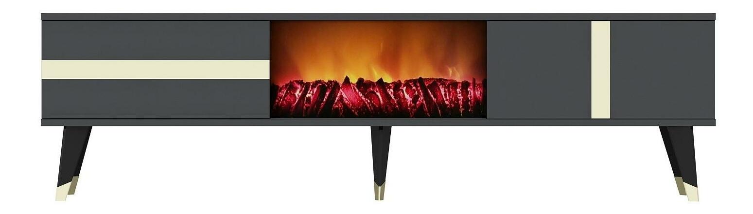TV stolek/skříňka s krbem Vekika 3 (antracit + zlatá)