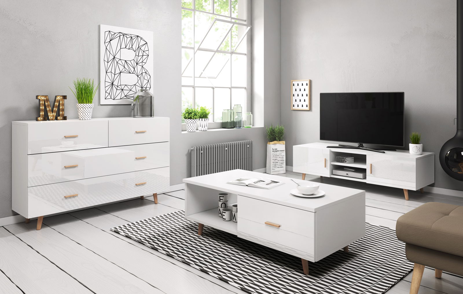 TV stolek/skříňka Santos 2 (bílý lesk + bílá matná)