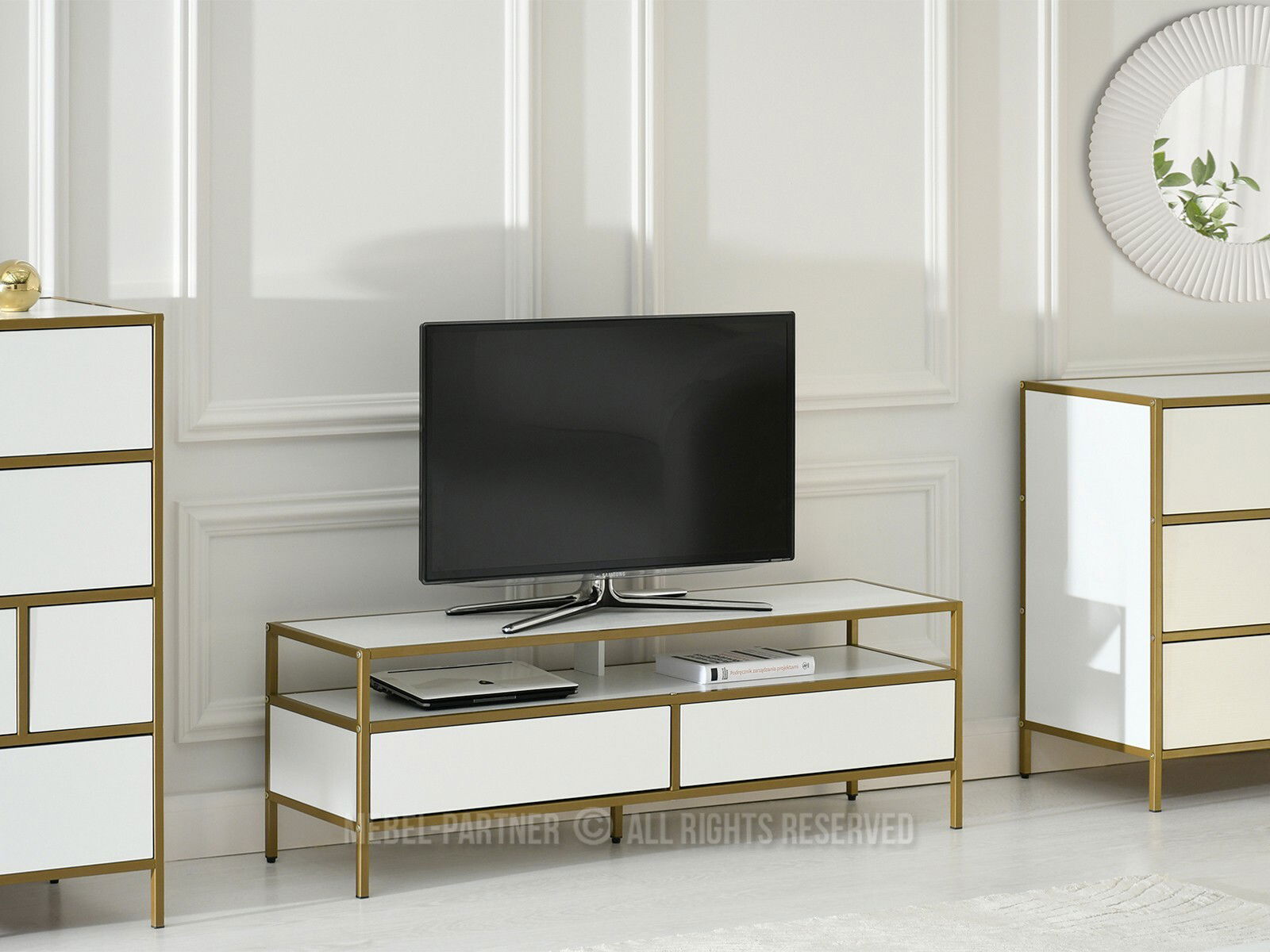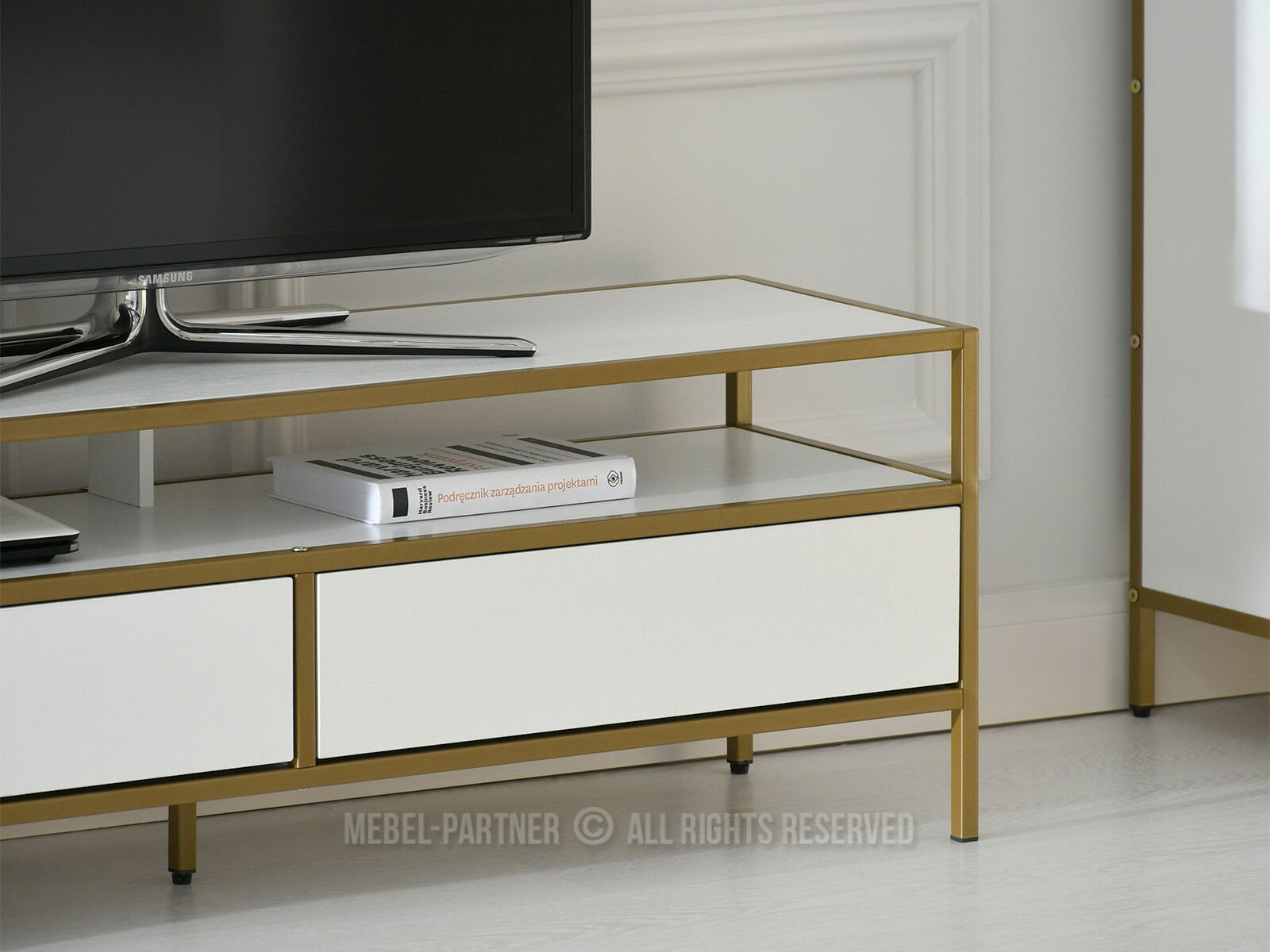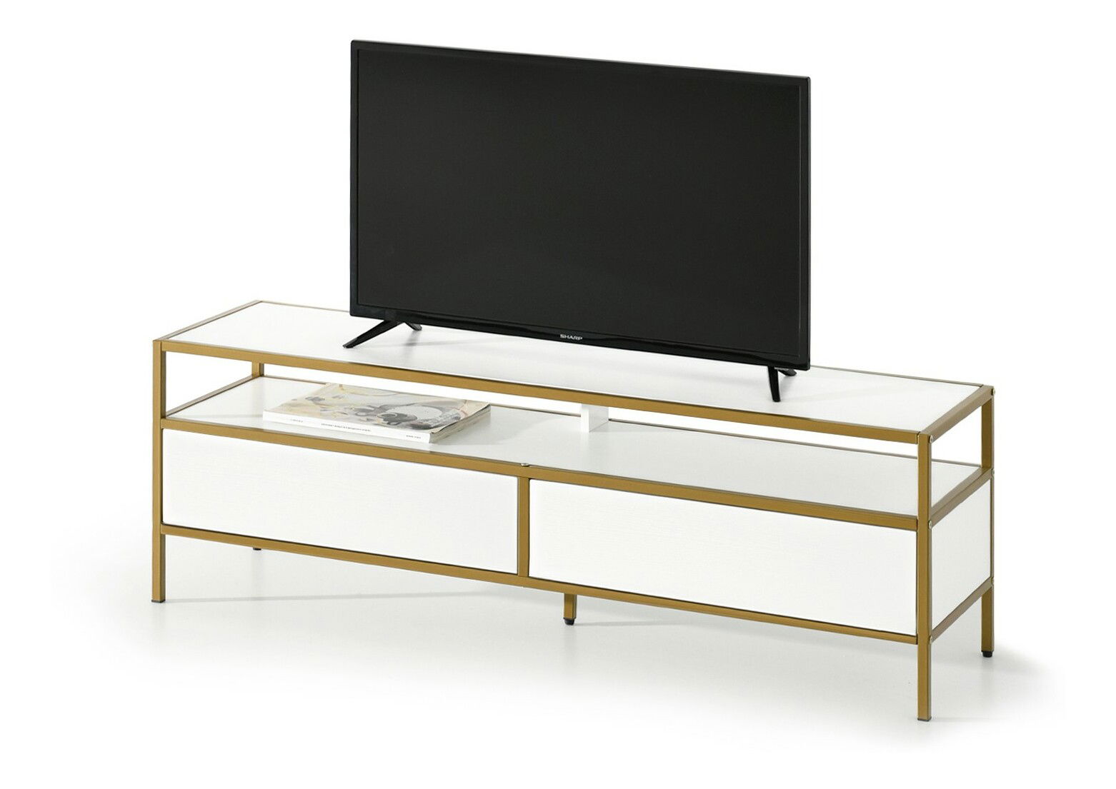 TV stolek/skříňka Soren Rtv (bílé dřevo + zlatá)