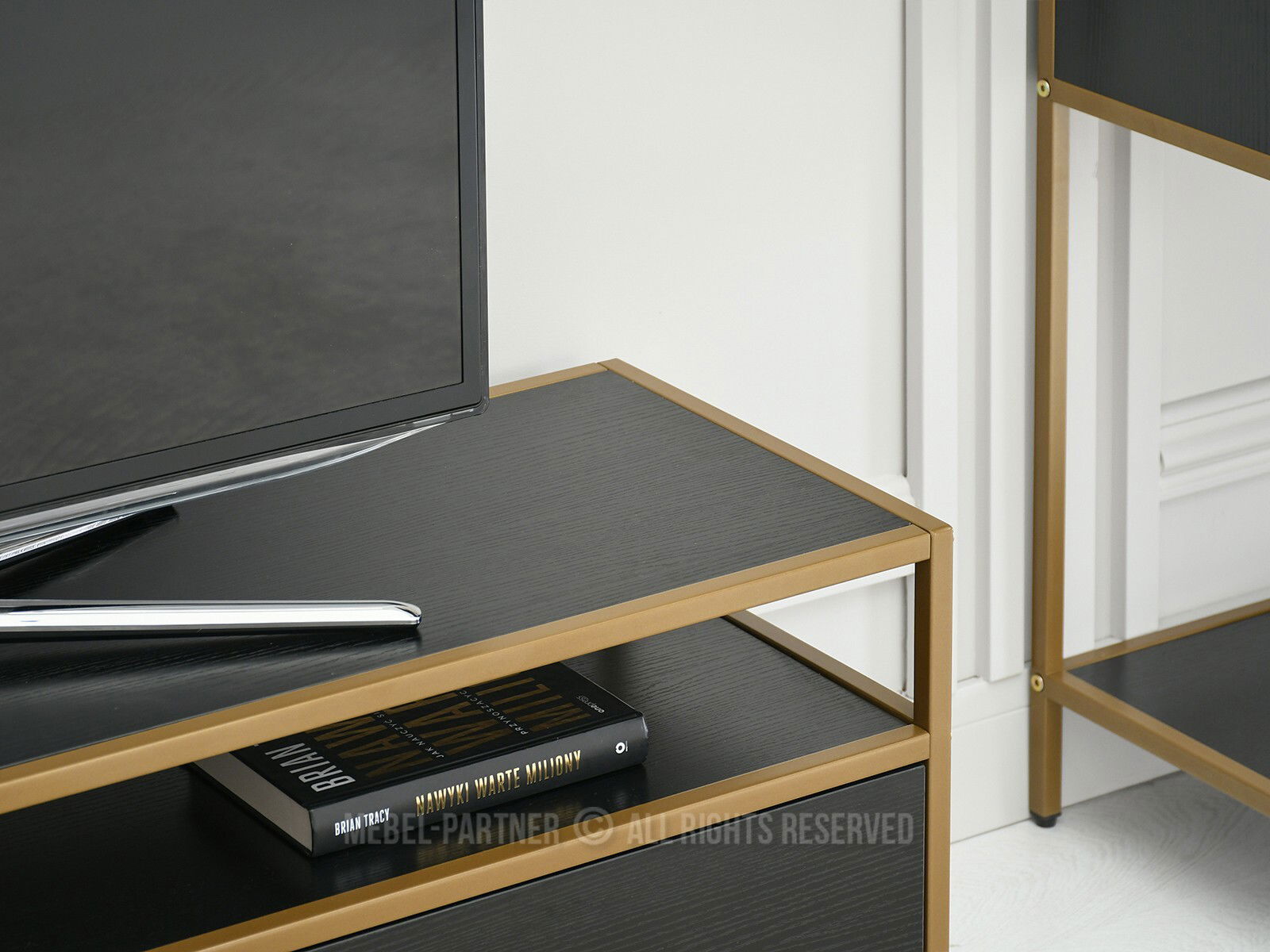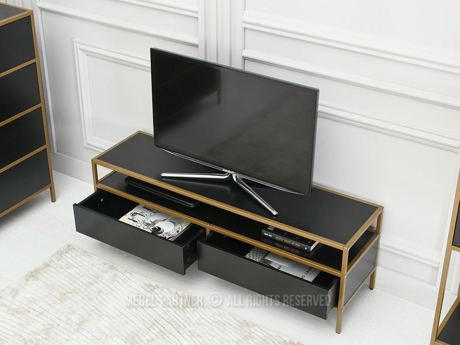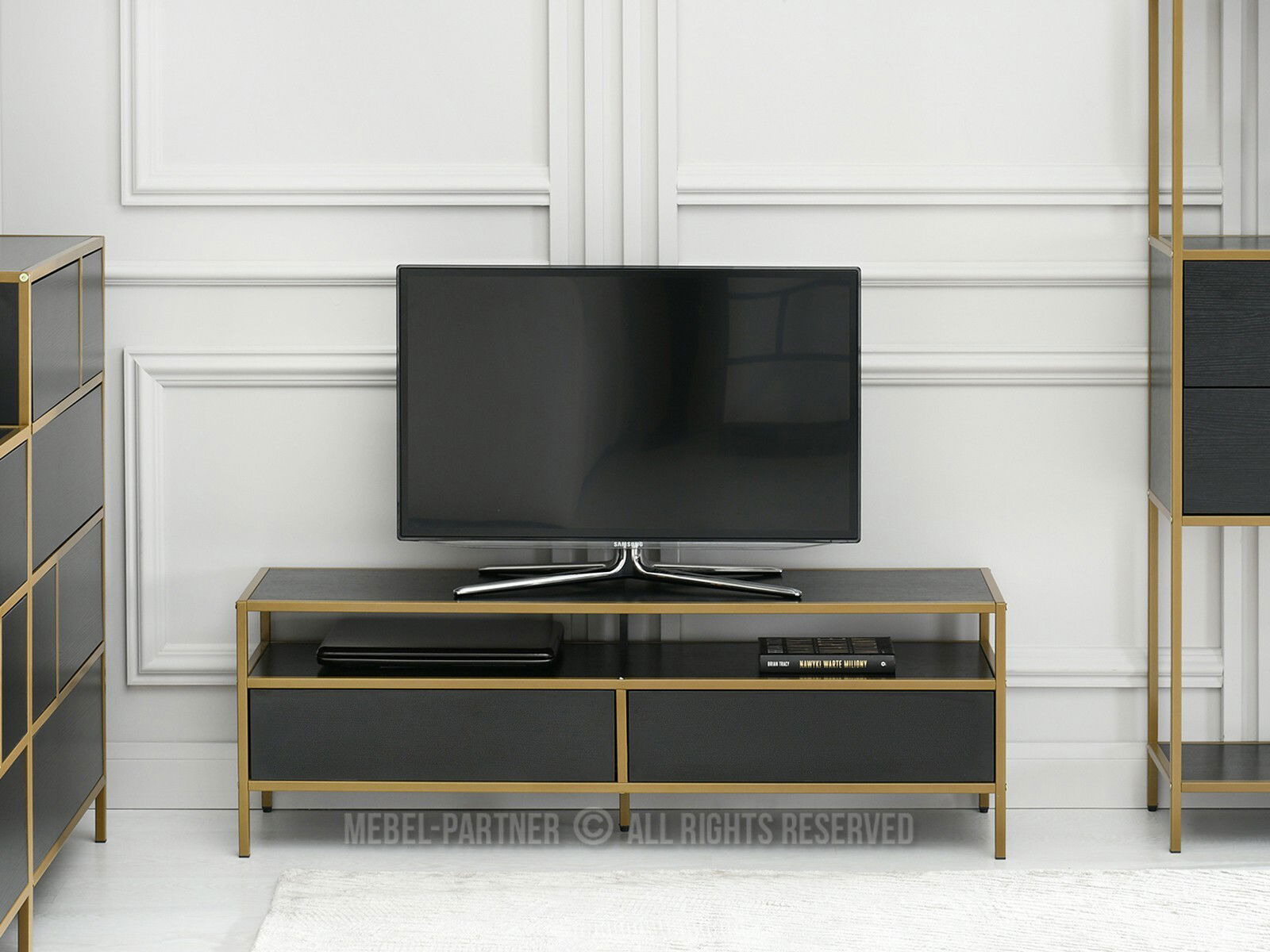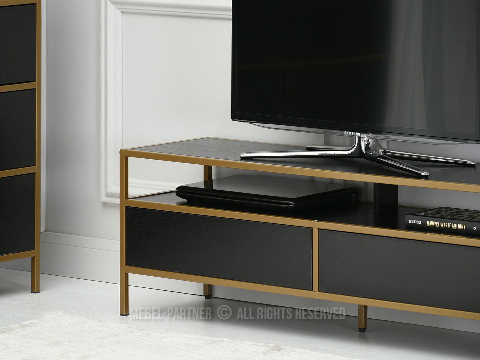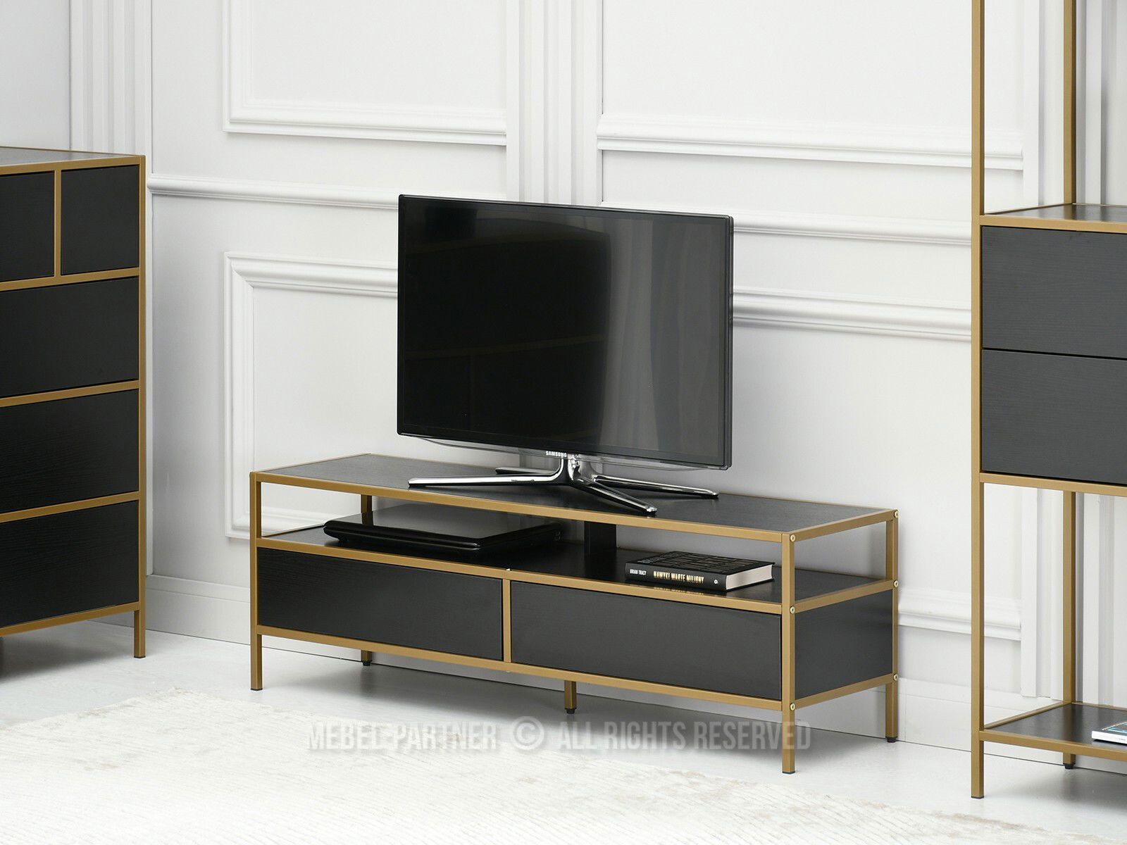 TV stolek/skříňka Soren Rtv (černé dřevo + zlatá)