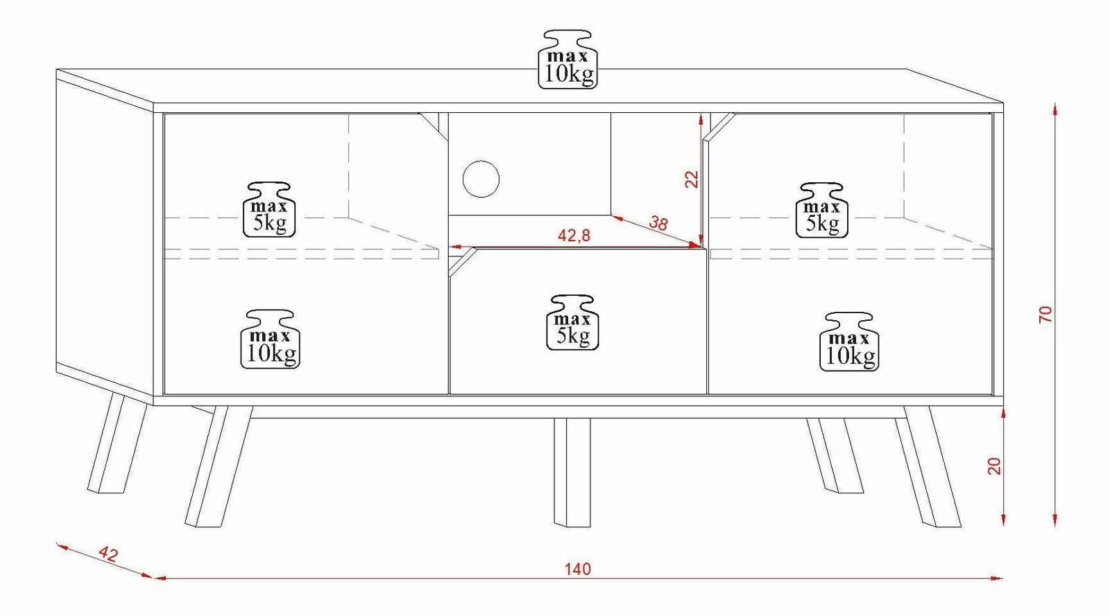 ZobrazitTV stolek/skříňka Tanuko kombinuje klasický dřevěný styl s moderním stylem. Výsledkem této kombinace je neobyčejně zajímavý kus nábytku, který svým vzezřením přinese dávku elegance a praktičnosti do každé místnosti!