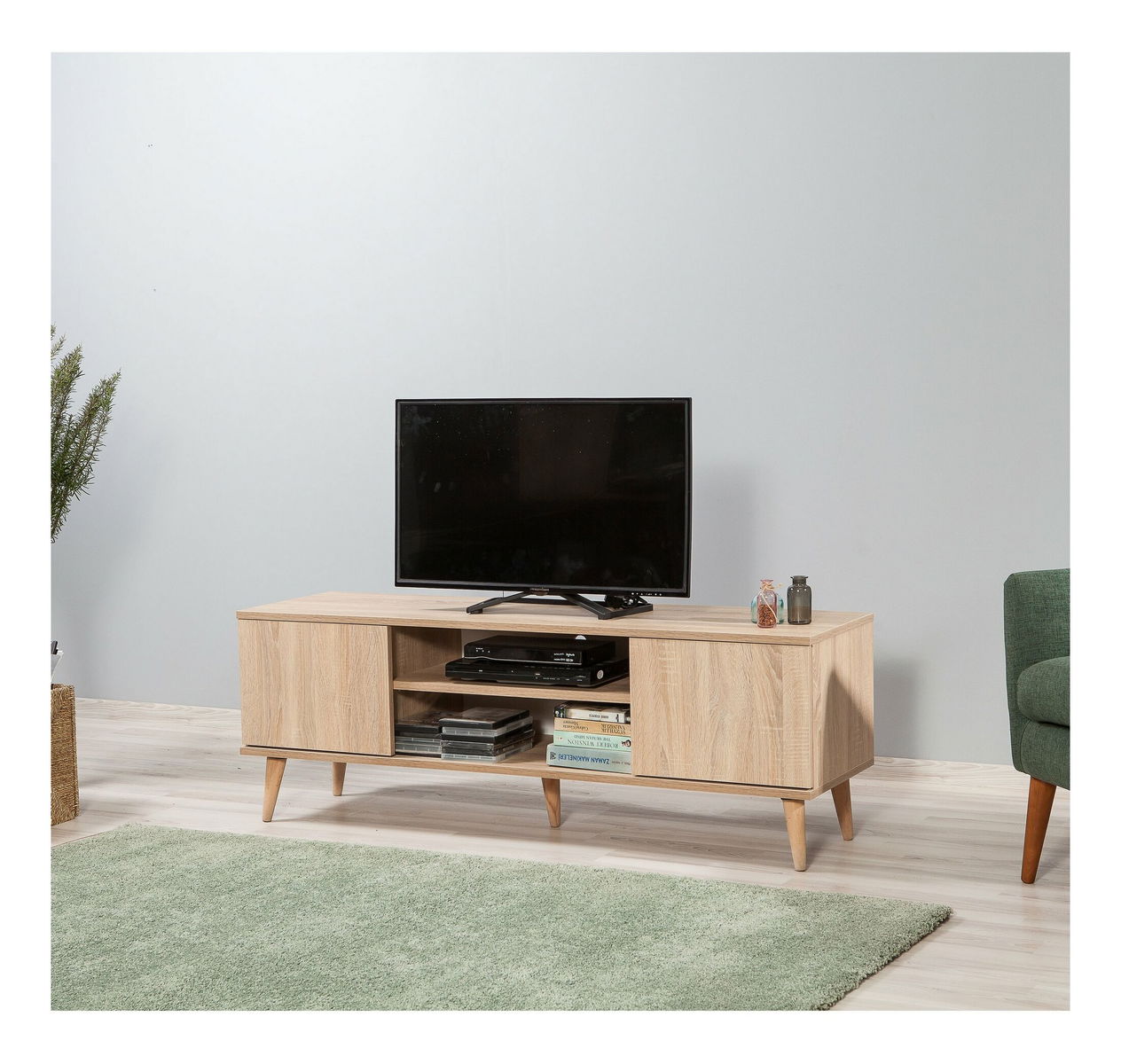 ZobrazitTento stolek/skříňka na televizor Toscan (Dub sonoma) je výborným doplňkem pro váš obývací pokoj. S výškou 50 cm, šířkou 140 cm a hloubkou 40 cm poskytuje dostatek místa pro vaši televizi a další zařízení. Jeho elegantní design v dubovém odstínu sonoma přidává styl a modernost do vašeho domova. Stolek/skříňka má také dostatek úložného prostoru pro vaše DVD filmy, herní konzole a ovladače. S tímto funkčním a kvalitním televizorovým stolkem/skříňkou vytvoříte pohodlné a uspořádané prostředí pro sledování vašeho oblíbeného pořadu.