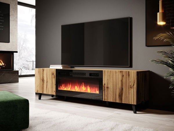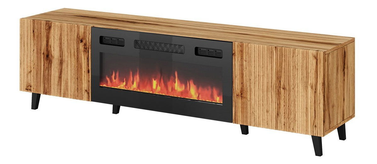 TV stolek/skříňka Trilari 180 s krbem (dub wotan + dub wotan + černá)