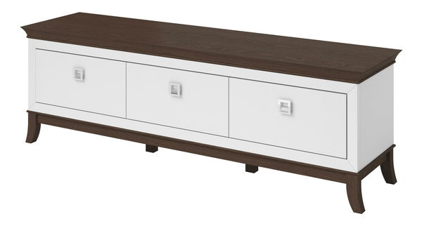 Tento TV stolek je stylovým a praktickým doplňkem do moderního obývacího pokoje, s důrazem na kvalitu a pohodlí při používání. Vyroben z laminované dřevotřísky s ABS hranami, zaručuje odolnost a dlouhou životnost. Stojí na nožkách z masivu, který mu poskytuje stabilitu a přirozený vzhled. Stolek je vybaven třemi zásuvkami, které poskytují dostatek úložného prostoru pro organizaci věcí. Díky systému tichého zavírání se zásuvky zavírají hladce a bez hluku, což zvyšuje komfort při každodenním používání. Kovové úchyty dodávají stolku kvalitní nádech, zatímco chybí vyhrazený prostor pro audio/video zařízení zachovává jeho kompaktní a minimalistický design.