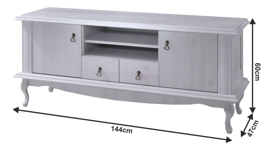 TV stolek/skříňka Valiara DA14 (bílá) je ideálním doplňkem vašeho obývacího prostoru. S rozměry 144x47x60 cm a výškou 60 cm je dostatečně velký pro vaši TV a jiná zařízení. Vysoká kvalita DTD laminované desky a ABS hran zajišťuje trvanlivost a odolnost stolku. Bílá barva sosny a 3D efekt dodávají stolku moderní vzhled. Skříňka má dvě jednodveřové skříňky a dvě zásuvky, takže máte dostatek místa pro uskladnění svých věcí. Kovové úchyty a ABS hrany jsou další přidané prvky ve stolku, které mu dodávají stylový vzhled. S výškou spodního prostoru od podlahy 15 cm je tento TV stolek/skříňka ideální pro každou domácnost.