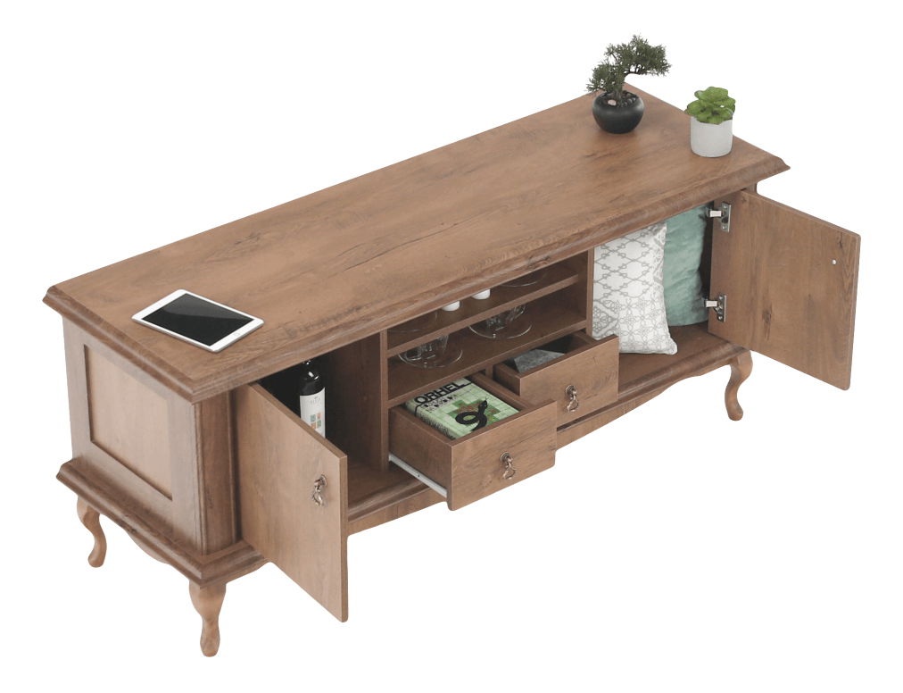 TV stolek/skříňka Valiara DA14 (dub lefkas) je kvalitní nábytek vyrobený z DTD laminované desky s ABS hranami a má barvu dub lefkas. Tento stolek má rozměry 144x47x60 cm, tloušťku materiálu 30 mm a výšku spodního prostoru od podlahy 15 cm. Na stolku jsou umístěny dvě jednodveřové skříňky a dvě zásuvky, které vám umožní uskladnit vaši elektroniku a další věci. Stolek má také 3D efekt, který mu dodává stylový vzhled, a kovové úchyty pro snadné otevírání a zavírání dveří a zásuvek. S touto praktickou a stylovou skříňkou můžete mít svoji televizi a ostatní elektroniku na jednom místě.
