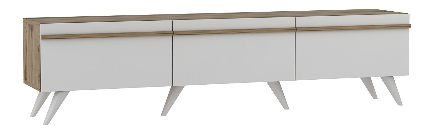 ZobrazitTV stolek/skříňka - Valika (bílá) je praktický a elegantní nábytek pro váš televizor. S výškou 42 cm, šířkou 180 cm a hloubkou 35 cm, nabízí dostatečně velkou plochu pro umístění vašeho televizoru a dalších zařízení. , tento stolek je odolný a snadno se udržuje. Bílá barva dodává stolku moderní a čistý vzhled, který se hodí do jakéhokoliv interiéru. S dostatkem úložného prostoru máte dostatek místa na uskladnění různých věcí, od ovladačů až po DVD přehrávače. Udělejte si pohodlí a zařiďte si svůj obývací pokoj s TV stolkem/skříňkou Valika (bílá).
