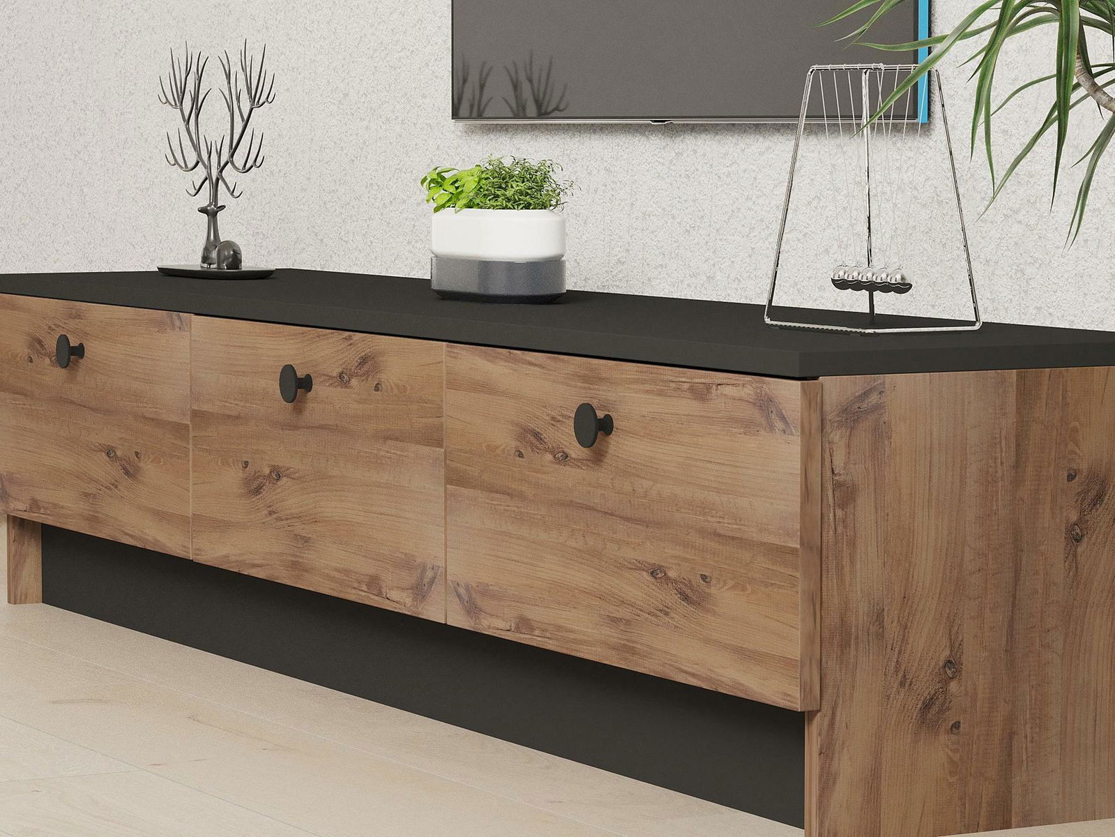 TV stolek/skříňka Vusato (černá + dub safírový)