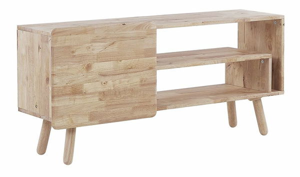 Tento krásný TV stolek vyrobený z kaučukového dřeva bude poutavým doplňkem každého moderního prostoru. Díky světlému tónu a viditelné kresbě dřeva nabízí přirozený vzhled, který se hodí ke každému stylu, od skandinávského až po rustikální. Je skvělým místem pro televizi, můžete jej však doplnit i zarámovanými fotografiemi nebo vázou s květinami. V případě, že chcete některé věci ukrýt do úložného prostoru, je zde skříňka s dvířky a dvěma policemi. Stolek můžete využít v obývacím prostoru nebo v kterékoli jiné místnosti, do které chcete přidat další úložný prostor.