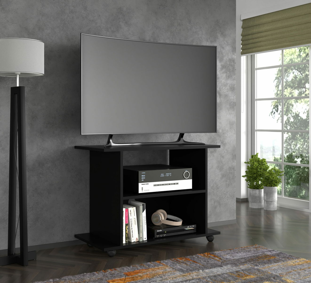 ZobrazitVelice praktická TV skříňka na kolečkách. Ideální do menších obývacích pokojů nebo pokoje pro mládež. Vysoká mobilita skříňky umožňuje volně uspořádat prostor v místnosti. Skříňka má dvě praktické otevřené police na knihy, CD nebo set-top boxy a konzole. Má také otvor pro kabely.