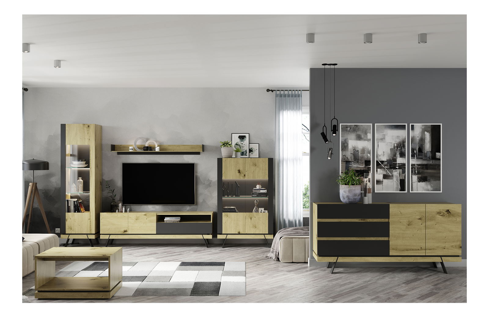 TV stolek Stacee (dub navarra + černá)