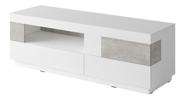 TV stolek Stacey Typ 41 (beton + bílá) o výšce 54 cm a hloubce 50 cm je ideálním řešením pro uspořádání vaší audiovizuální techniky. Tento stolek je vyroben z laminovaných desek a ABS lišt, což zaručuje jeho pevnost a odolnost. Stolek nabízí spoustu úložného prostoru, který je rozdělen na několik zásuvek a otevřený prostor pro AV techniku. Spodní zásuvka má výklopná dvířka, která jsou otevírána bezúchytovým systémem. Nábytek ze série Stacey je navržen tak, aby nabízel dostatek úložného prostoru v podobě polic a současně byl moderním kouskem nábytku do vašeho obývacího pokoje. Vzhledem k jeho designu a kvalitě zpracování je ideálním doplňkem pro váš interiér.