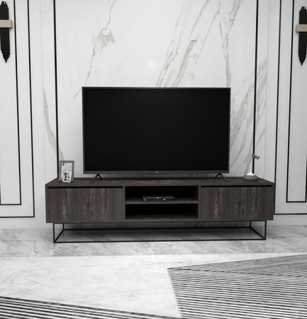 TV stolek/skříňka o výšce 50 cm, šířce 180 cm a hloubce 40 cm. Tento stolek/skříňka Esca 1 je vyrobena z kvalitní 100% melaminové desky. Je v barvách tmavohnědá a černá. Ideální volba pro uspořádání vaší televize, herního systému a dalších elektronických zařízení. Díky svému modernímu designu a praktickému úložnému prostoru poskytuje dostatek místa pro vaše věci. Stolek/skříňka Esca 1 je dokonalým doplňkem pro váš obývací prostor a dodá mu elegantní vzhled.