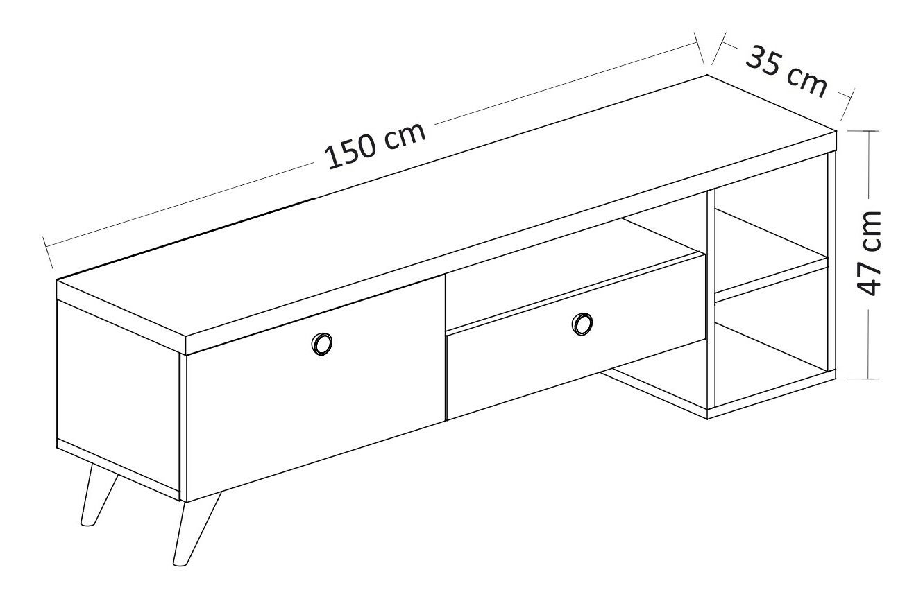 ZobrazitTV stolek/skříňka Paria je ideálním doplňkem pro váš obývací prostor. S výškou 47 cm, šířkou 150 cm a hloubkou 35 cm poskytuje dostatek místa pro uspořádání vaší televize, médií a dalších zařízení. domova. Vyroben z vysoké kvality 100% melaminové desky, stolek/skříňka Paria je odolný vůči poškrábání a snadno se udržuje. S tímto nábytkovým kouskem získáte nejen praktické řešení pro váš TV, ale také stylový a funkční prvek do vašeho interiéru.