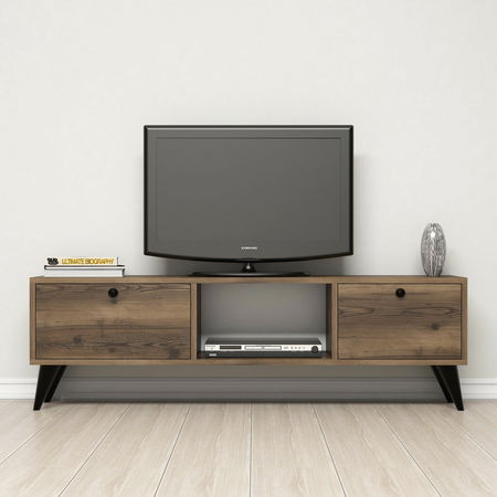TV stolek/skříňka - Serra je vyroben z kvalitní 100% melaminové desky. S výškou 42.6 cm, šířkou 138 cm a hloubkou 29.5 cm je ideálním řešením pro váš televizor a multimediální zařízení. vašeho interiéru sofistikovaný vzhled. Skříňka nabízí dostatek úložného prostoru pro různé předměty, což vám pomůže udržet váš prostor uklizený a organizovaný.