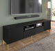 ZobrazitTV stolek/skříňka Surfy 2D (černá) o výšce 56 cm, šířce 200 cm a hloubce 42 cm je dokonalým doplňkem vašeho obývacího prostoru. Tato černá skříňka s bílými detaily je součástí luxusní kolekce nábytku do obýváku. Čisté linie a jednoduché barvy zaručují, že se bude hodit do každého interiéru. Zlatý detail na nábytku dodává punc elegance a činí z něj výjimečný kus. S TV stolkem/skříňkou Surfy 2D (černá) si můžete užívat svůj oblíbený seriál nebo film v dokonalém stylu a pohodlí.