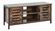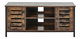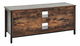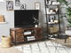 Tento nízký TV stolek z tmavého dřeva s černým rámem v industriálním stylu se bude skvěle hodit do jakéhokoli moderního obývacího pokoje. Dvířka mají lamelovou přední část, díky čemuž můžete do skříňky umístit i různé dekorativní předměty. Police nabízejí dostatek místa pro uložení knih nebo jiných ozdob.