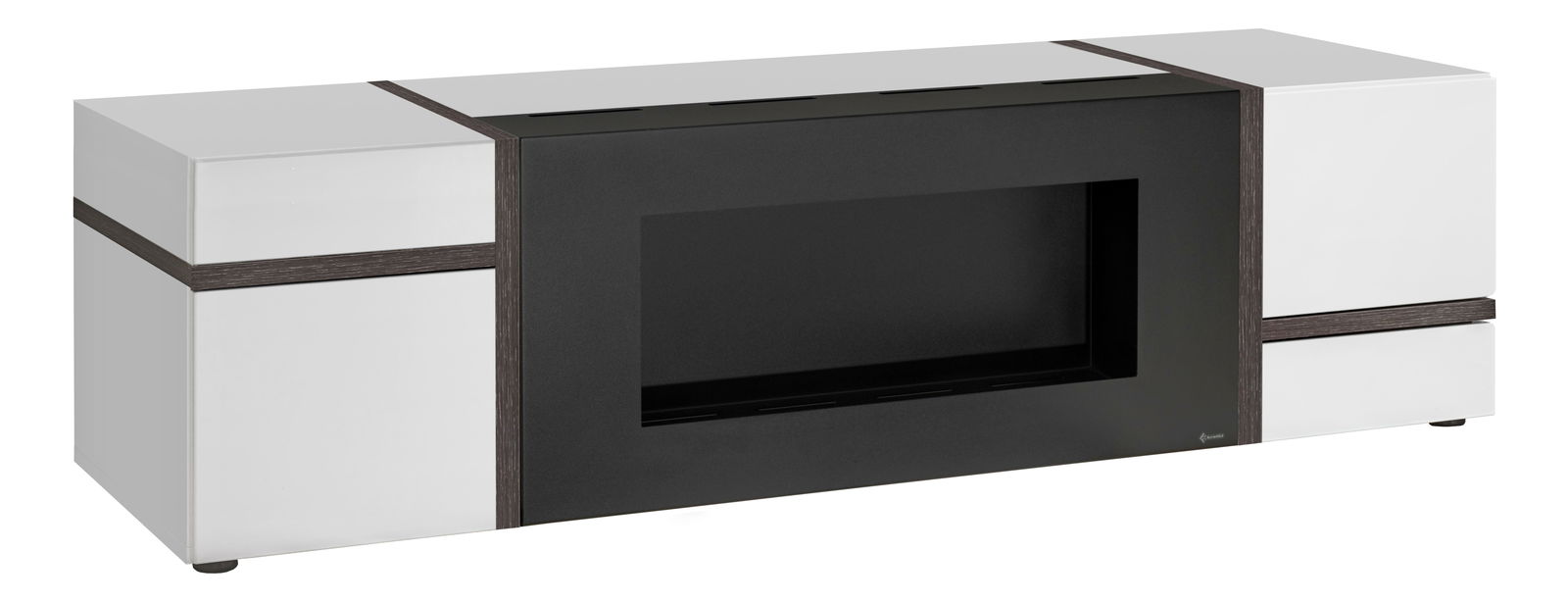 TV stolík/skříňka Carlyn PEW CS RTV-K (bílá + bílý lesk + jilm perlový) (s bio krbem)