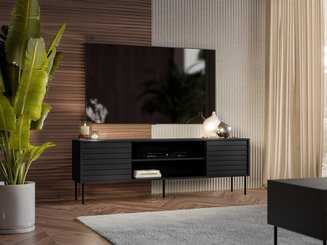TV skříňka Dlana 180 MDF (černý grafit + rybí kost černá) (s bílým LED osvětlením) *výprodej