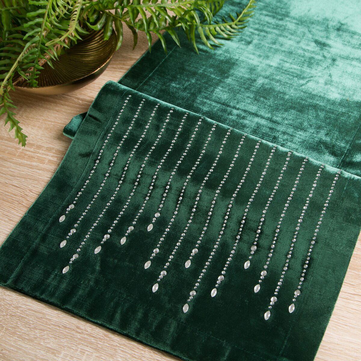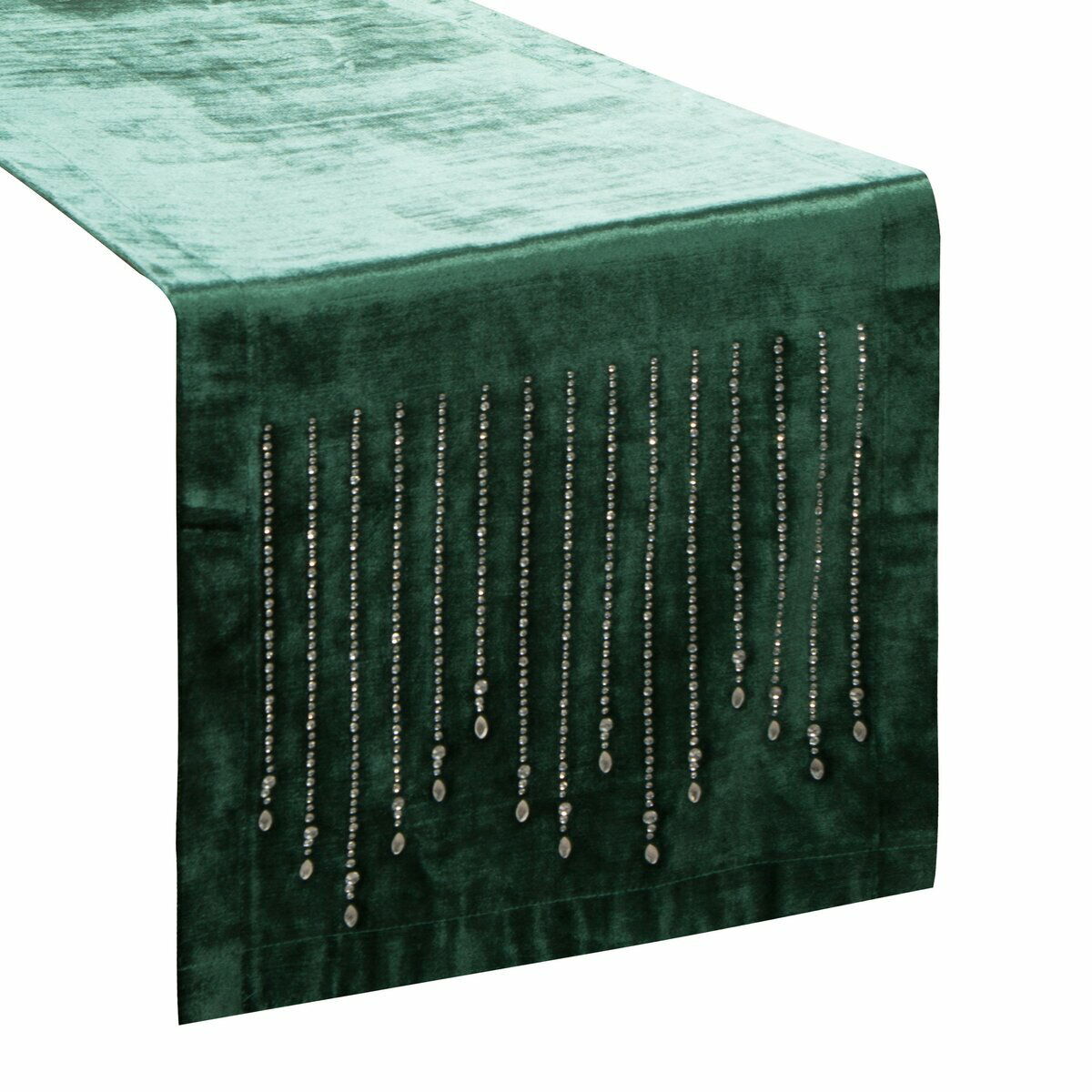 Ubrus Raley (zelená) o rozměru 35x220 cm je elegantním doplňkem pro každou příležitost. Vyroben z lesklého sametu, který dodává elegantní vzhled, a zdobený krychlovými zirkony, které dotváří jeho sofistikovanost. Ochrání váš stůl před škrábáním a znečištěním, zároveň vytváří příjemnou atmosféru. Ubrus je jednoduše ošetřitelný a vydrží vám dlouhá léta. Tento kus jistě potěší každého milovníka elegance a vkusu.