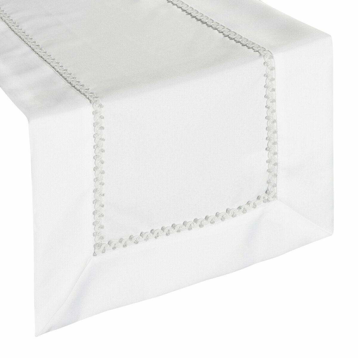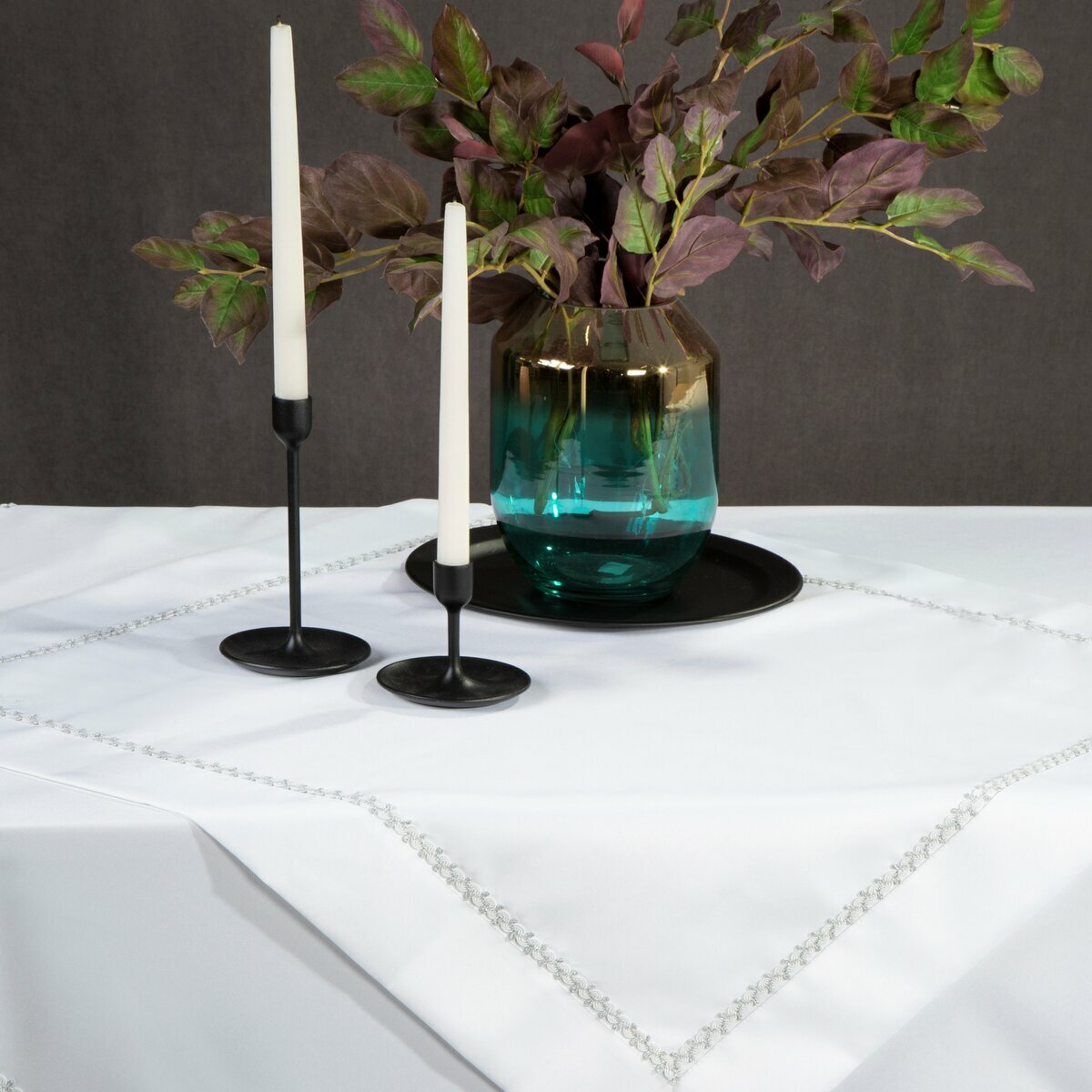 Ubrus Eurofirany Davi (bílá) (1 ks) je ideální volbou pro ty, kteří hledají kvalitní a zároveň elegantní ubrus Tento ubrus je zdoben krásným páskem a lemem se stříbrnými prvky, vytváří tak stylový dojem a přitom odpovídá nejvyšším nárokům na kvalitu. z odolného materiálu, který zajišťuje, že se rychle nepoškodí a bude sloužit dlouhá léta. (bílá) je vhodný pro různé příležitosti od rodinných oslav až po oficiální události. Vynikající doplní váš stůl a přinese do vaší domácnosti nádech elegance a stylu.