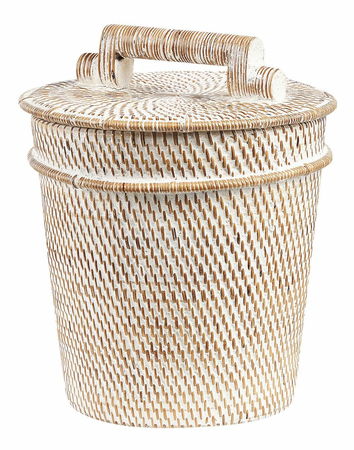 Ať už potřebujete ve svém interiéru další úložný prostor nebo jej chcete oživit stylovým doplňkem, tento koš vám s tím pomůže. Je vyroben z odolného ratanu, je natřen bílou barvou a je ručně vyroben, takže žádný jiný doplněk nebude vypadat stejně. Je nenáročný na údržbu, což znamená, že se nemusíte starat o jeho každodenní čištění. Dodává se s víkem a rukojetí, takže do něj můžete schovat šperky nebo jiné důležité předměty.