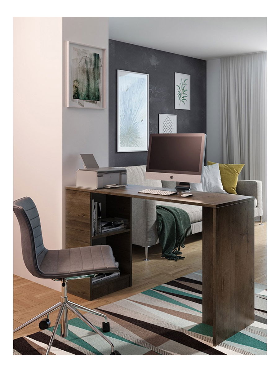 Moderní psací stůl Nolan je určen k vybavení domácí pracovny, studentského pokoje a náročného studenta. Díky optimální velikosti a promyšlenému uspořádání polic je snadno umístíte do výklenku, u okna nebo do malého koutku v ložnici. Na pracovní stůl můžete umístit počítač, budou tam také knihy a dokumenty, které potřebujete ke své práci. Dodatečný prostor pro potřebné nádobí nabízí také otevřené police zabudované v jedné ze stran. Na výběr máte několik módních barev, které vám umožní sladit nový psací stůl s ostatními prvky zařízení.