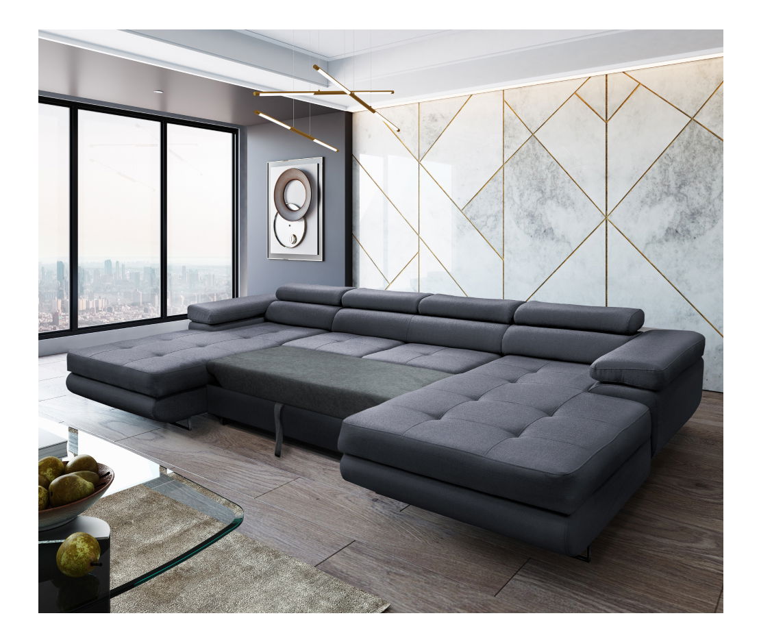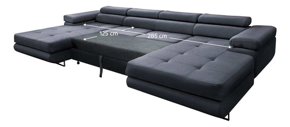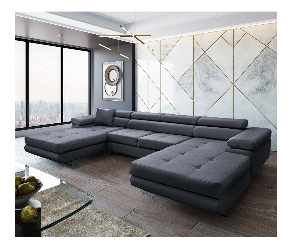 Vyberte si sedací soupravu, která nabízí pohodlí, kvalitu použitých materiálů, moderní design a samozřejmě funkčnost. Aprina U splňuje všechna kritéria výborné sedačky. Je rozkládací, takže nabízí dostatek místa pro lenošení nebo příležitostné spaní o rozměru 125x285 cm. Opřete se o pevná opěradla a vychutnávejte si chvíle oddechu. Čtyři polohovací opěrky hlavy zajišťují komfortní oporu hlavy a krční páteře. Umíte si je nastavit a zajistit až v šesti stupních. Sedačka poskytuje úložný prostor, který najde ve vaší domácnosti všestranné využití. Je čalouněna šedou látkou Monolith, čalouněná je i zadní strana sedačky, můžete ji tedy klidně umístit doprostřed místnosti. Sedací část je ozvláštněna dekorativním šitím. Součástí je také jeden dekorativní polštář. Sedačku podpírají moderní kovové nožičky ve stříbrné barvě.