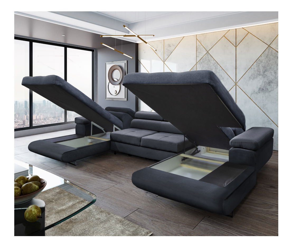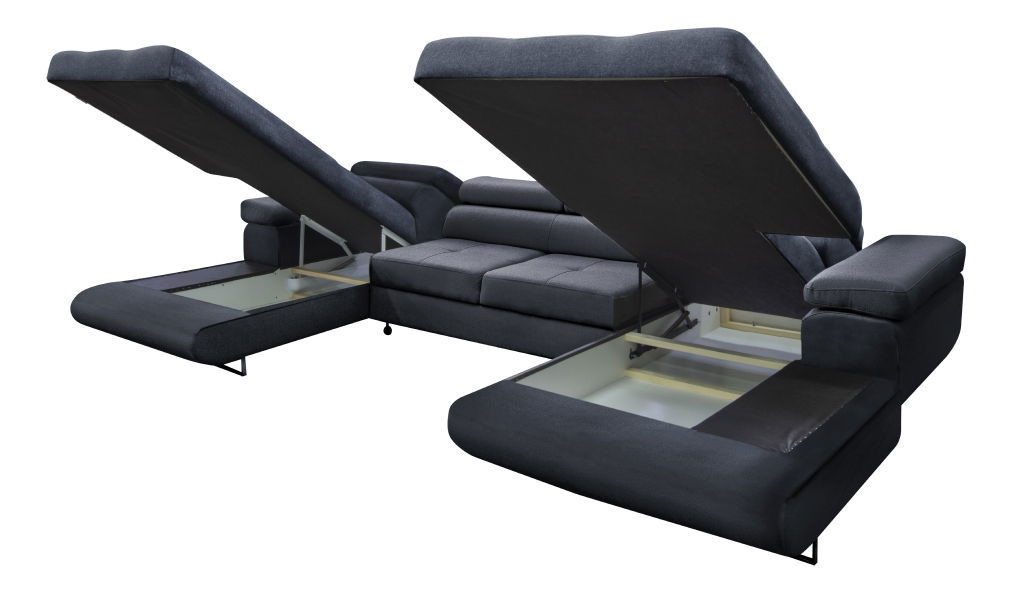 Celočalouněná, Rozkládací, Univerzální, Rohová, S úložným prostorem, Dekorativní šití sedáku, 4 polohovací opěrky hlavy, 6 stupňové polohování opěrek, Moderní designové nožičky, S úložným prostorem, Dodáváno s polštářkem