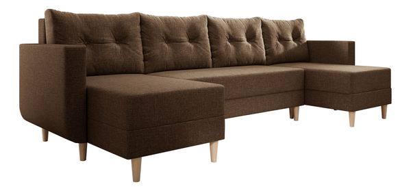 Hladké povrchy, čisté linie a přírodní materiály. To jsou charakteristické znaky severského stylu. Vychutnat si chvíle pohodlí se severským nádechem naplní do tečky sedací souprava Buron U. Celočalouněná je látkou Savana v hnědém barevném provedení. Je univerzální sedací soupravou, kterou jednoduše poskládáte s rohem na pravé nebo levé straně. Disponuje úložným prostorem a funkcí rozkladu s plochou na spaní 130x200 cm. Doplňkem sedací soupravy Buron U jsou čtyři polštáře, které prakticky nahradí opěrky zad. Celkovou atmosféru Buron U podtrhují dřevěné nožičky v přírodní barvě na kterých je postavena.