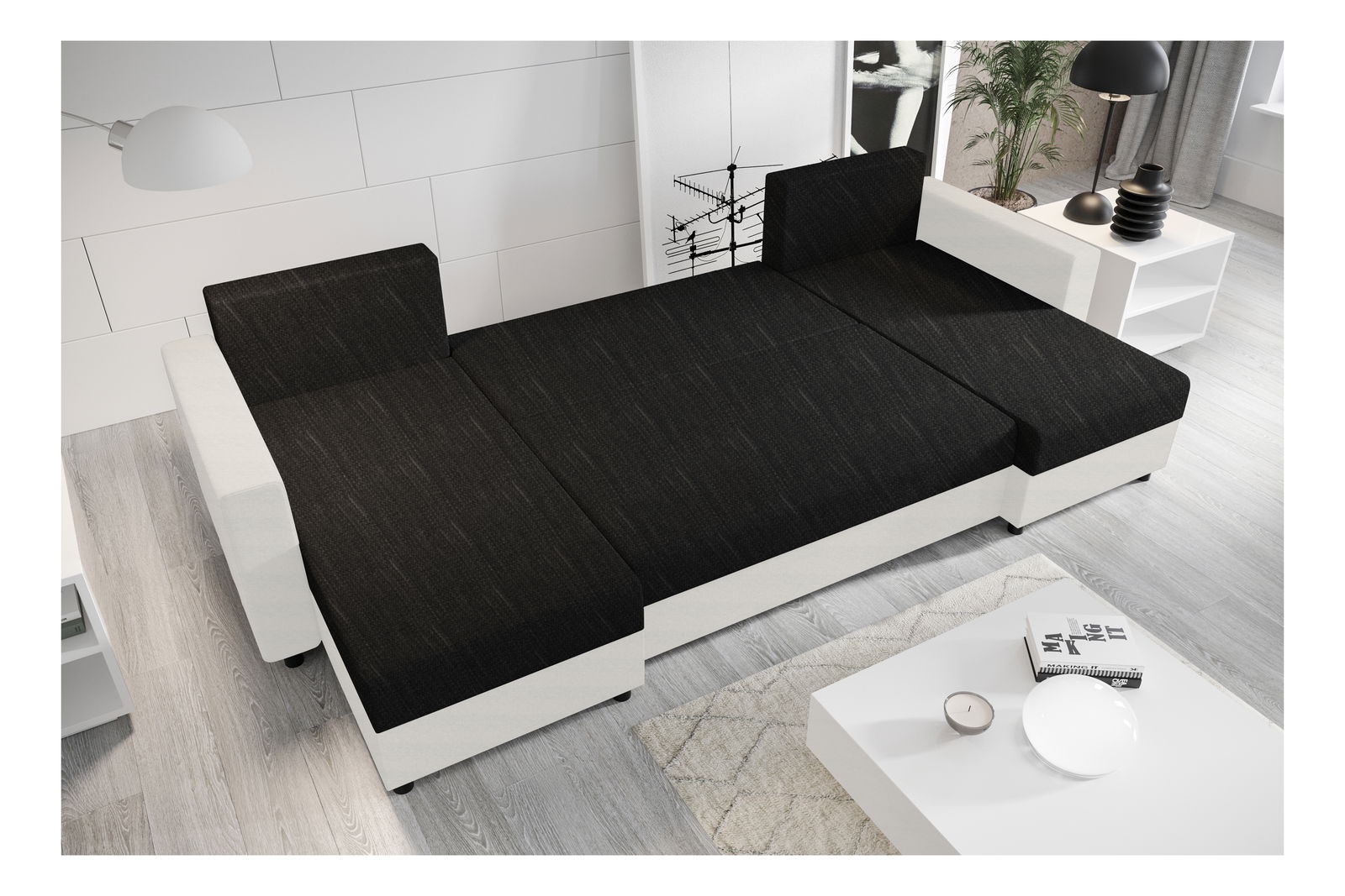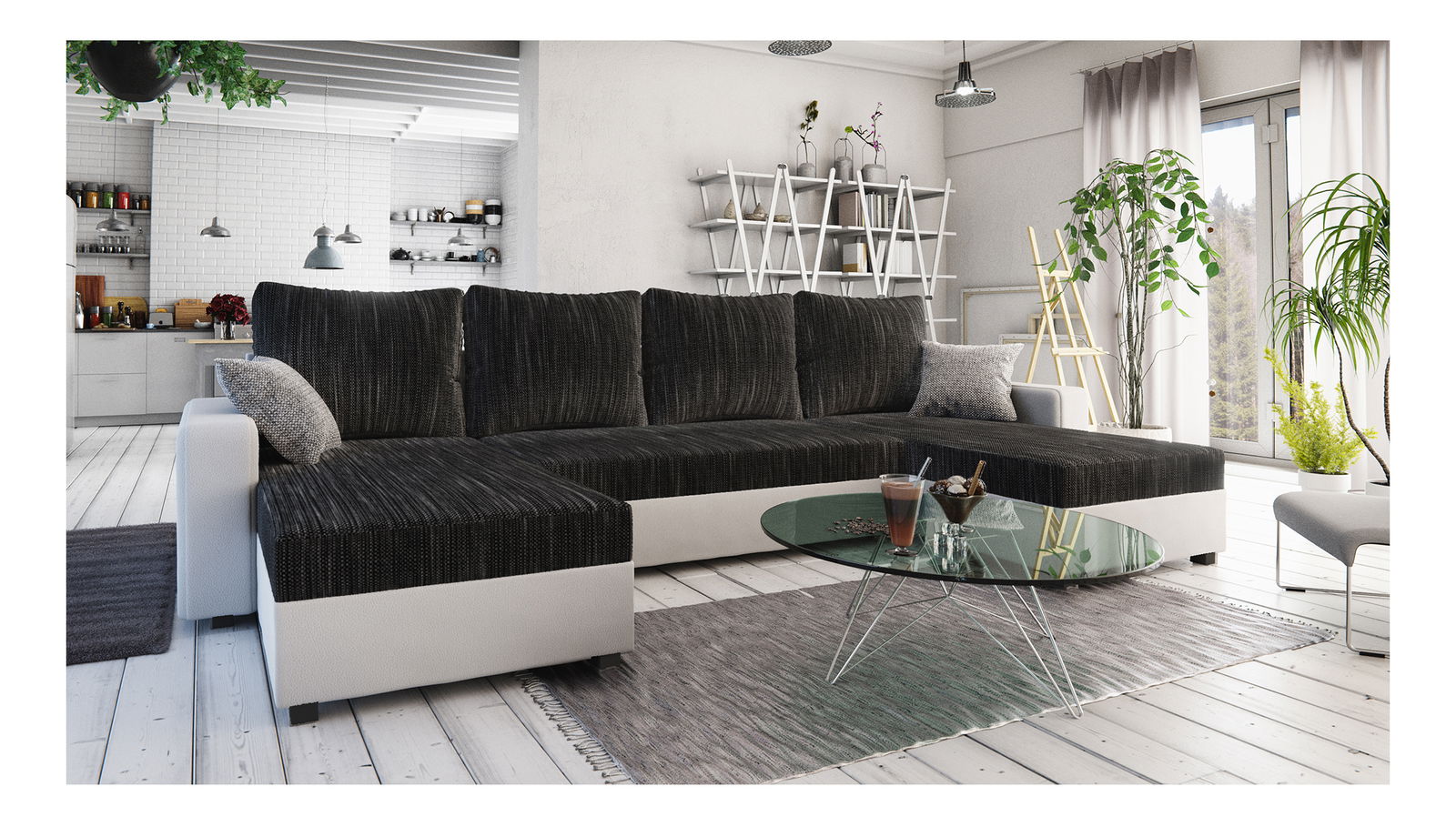 Hledáte sedací soupravu ve tvaru U, která nabízí komfortní sezení pro více členů rodiny? Přesně taková je univerzální sedací souprava Timoteus U. Čaluněná je látkou Kornet v černém barevném provedení v kombinaci s bílou ekokůží. Praktický úložný prostor vám poslouží k uskladnění sezónních přikrývek, polštářů či jiných věcí. Navíc je rozkládací, ideální pro občasné přespání nebo nedělní lenošení o rozměru 133x294 cm. Součástí sedací soupravy je šest polštářů, které nemusí sloužit jen jako zpestření sedací soupravy, ale také jako pohodlné opření zad. Polštáře jsou také oblečeny do látky Kornet v kombinaci barev černá a šedá. Je celočalouněná, takže ji klidně můžete umístit do prostoru a nechat ji vyniknout. Celá konstrukce stojí na nožičkách, které dodávají sedací soupravě Timoteus U potřebnou pevnost a stabilitu. Relax po namáhavém dni může začít.