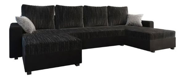 Hledáte sedací soupravu ve tvaru U, která nabízí komfortní sezení pro více členů rodiny? Přesně taková je univerzální sedací souprava Timoteus U. Čaluněná je látkou Kornet v černém barevném provedení v kombinaci s černou ekokůží. Praktický úložný prostor vám poslouží k uskladnění sezónních přikrývek, polštářů či jiných věcí. Navíc je rozkládací, ideální pro občasné přespání nebo nedělní lenošení o rozměru 133x294 cm. Součástí sedací soupravy je šest polštářů, které nemusí sloužit jen jako zpestření sedací soupravy, ale také jako pohodlné opření zad. Polštáře jsou také oblečené do látky Kornet v kombinaci barev černá a šedá. Je celočalouněná, takže ji klidně můžete umístit do prostoru a nechat ji vyniknout. Celá konstrukce stojí na nožičkách, které dodávají sedací soupravě Timoteus U potřebnou pevnost a stabilitu. Relax po namáhavém dni může začít.
