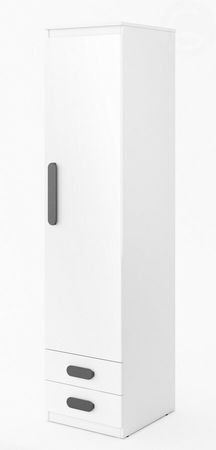 Šatní skříň dvoudveřová ze sektorové řady REPLAY. Netradiční zpracování barev a originalita úchytů zaujme každou generaci. Barevné provedení - korpus bílá mat, dvířka jsou v bílém lesku. Pestrost nábytku dodá možnost vybrat si barvu úchytu - nabízíme 6 barevných provedení. Nábytek je vyroben z kvalitního lamina 16 mm ohraničené ABS páskou