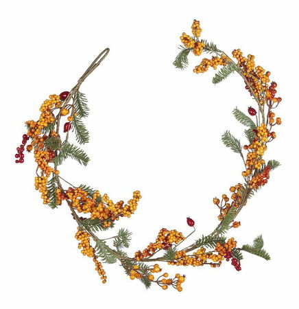 Nechte se inspirovat podzimním počasím a vneste do svého interiéru pravou podzimní atmosféru pomocí této krásné dekorace. Girlanda je vyrobena ze syntetických materiálů, ale přesto vypadá velmi přirozeně a vyžaduje jen minimální údržbu. Bobulky v odstínech oranžové a červené příjemně kontrastují se zelenými větvičkami a svými barvami oživí každou místnost zařízenou v tlumených barvách. Chcete-li ve svém interiéru vytvořit skutečně útulnou atmosféru, girlandu zkombinujte se svíčkami nebo jinými dekoracemi.
