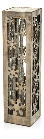 Vánoční dekorace - větvičky s vločkamitvar kvádrMateriál: dřevo a překližka20LEDBarva světla: studená bíláRozměry: 90 x 90 x 405 mmVhodné pouze pro vnitřní použití (IP 20)Napájení: 2xAABaterie nejsou součástí balení