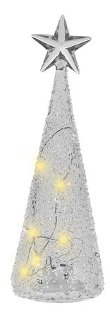 Skleněná dekorace ve tvaru stromečku 8LEDRozměry: 70 x 200 mmBarva světla: teplá bíláPočet LED: 8Napájení 3xLR44Pro vnitřní použitíKrytí: IP 20