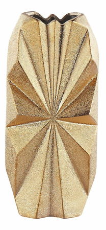 Díky svému asymetrickému tvaru se tato váza jistě stane výrazným kouskem každého interiéru. Tento poutavý doplněk je vyroben z kameniny se zlatou povrchovou úpravou, která váze dodává glamour nádech. Je skvělým doplňkem každé police nebo stolu a lze ji použít jako samostatnou dekoraci nebo v kombinaci s umělými květinami.