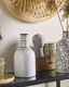 Tato váza ve tvaru láhve zkrášlí váš interiér a vnese do něj špetku vintage stylu. Díky prasklinám na bílém povrchu a efektnímu vzoru skvěle poslouží jako ozdobný prvek na stole nebo jako zajímavá dekorace na poličce. Jelikož je vodotěsná, můžete ji zcela bez obav použít i v kombinaci s čerstvými květy.