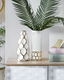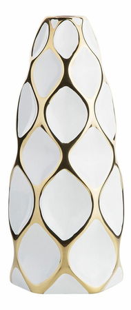 Rozjasněte každý kout v domě krásným a elegantním doplňkem v podobě této kameninové vázy. Tato váza s abstraktním tvarem a umělecky tvarovaným povrchem v nadčasové kombinaci bílé a zlaté bude skvělým středobodem interiérů v eklektickém či glamour stylu.