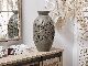 Tato velká váza v boho stylu inspirovaná řeckým designem je dokonalou dekorací, kterou lze umístit na komodu nebo podlahu. Je vyrobena ručně z vysoce kvalitní terakoty a doplněna vyřezávaným motivem. Šedá barva a zajímavý design jsou hlavními rysy této vázy, díky kterým je dokonalým doplňkem do obývacího pokoje v retro stylu.