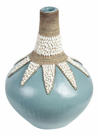 Osvěžte svůj domov touto dekorativní vázou s letním designem. Je vyrobena z terakoty, je odolná a vyžaduje nenáročnou údržbu. Její vrch zdobí mušle, které zvýrazňují její jedinečný design. Jelikož jde o ruční práci, můžete si být jisti, že každá váza bude dokonalým doplňkem vašich oblíbených sušených a umělých květin.